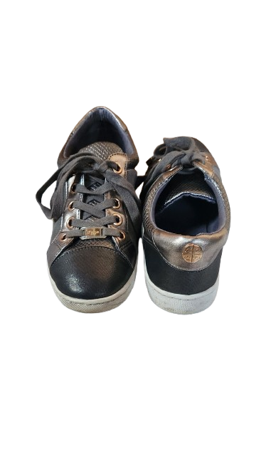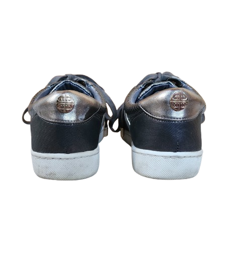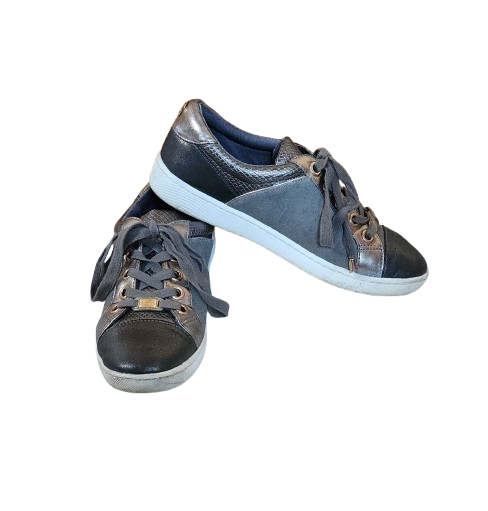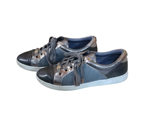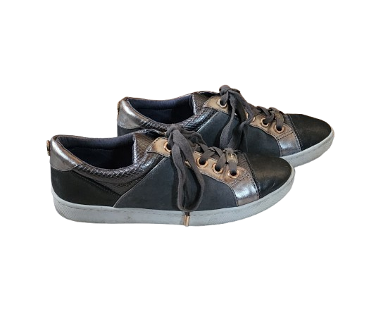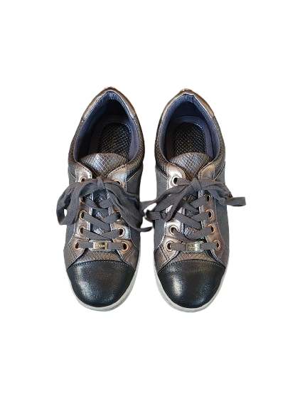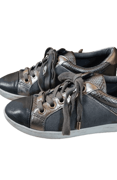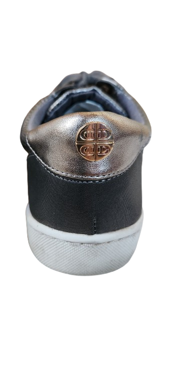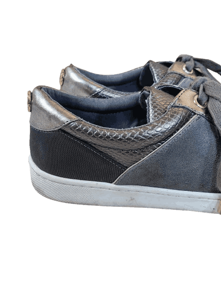 ✔ Ces baskets basses, modèle Euston, en cuir gris métallisé de Dune London allient élégance et confort. Leurs empiècements contrastés en suède et à effet serpent apportent une touche sophistiquée, tandis que les œillets métalliques et les lacets gris avec embouts métalliques soulignent leur qualité raffinée.