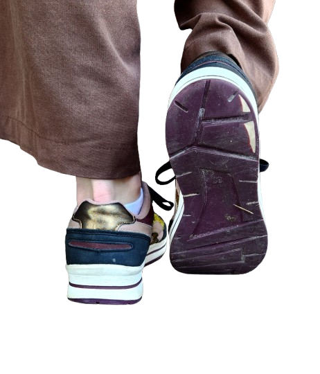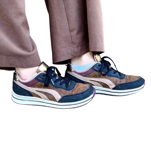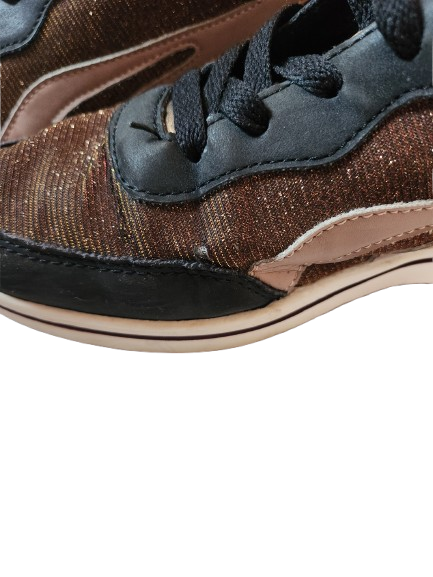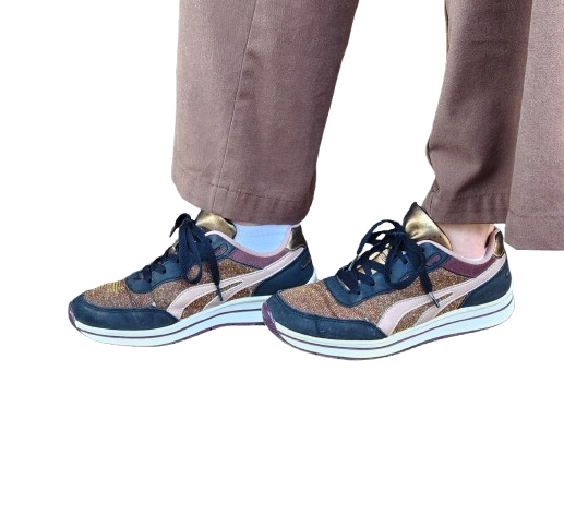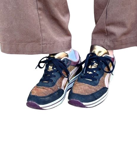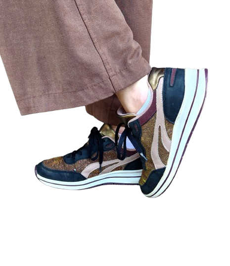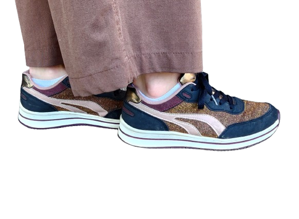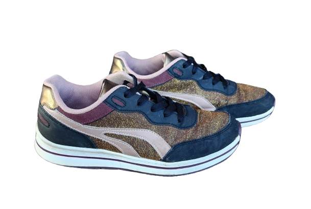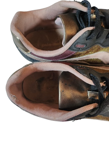 ✔ Baskets fantaisie à lacets, légères de couleur noir, voiline, doré et rose avec un dessus pailleté à reflets changeant