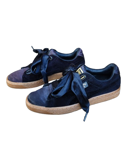 ✔ Baskets basses à lacets ruban satin, bi-matière en daim et tissu satiné devant, logo doré sur la languette, derrière et sur le côté