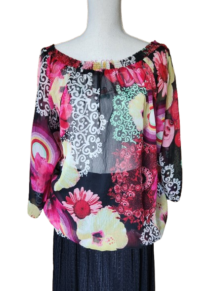 ✔ Blouse fluide et légère, semi-transparente avec les manches chauve-souris