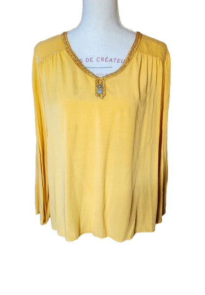 ✔ Blouse légère et fluide avec son col brodé et tressé avec du fil argenté et des sequins scintillants sur les épaules pour une touche d'élégance
