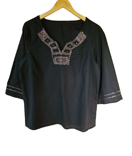 ✔ Jolie blouse noire avec perles et sequins argentés pour une touche d'élégance