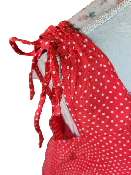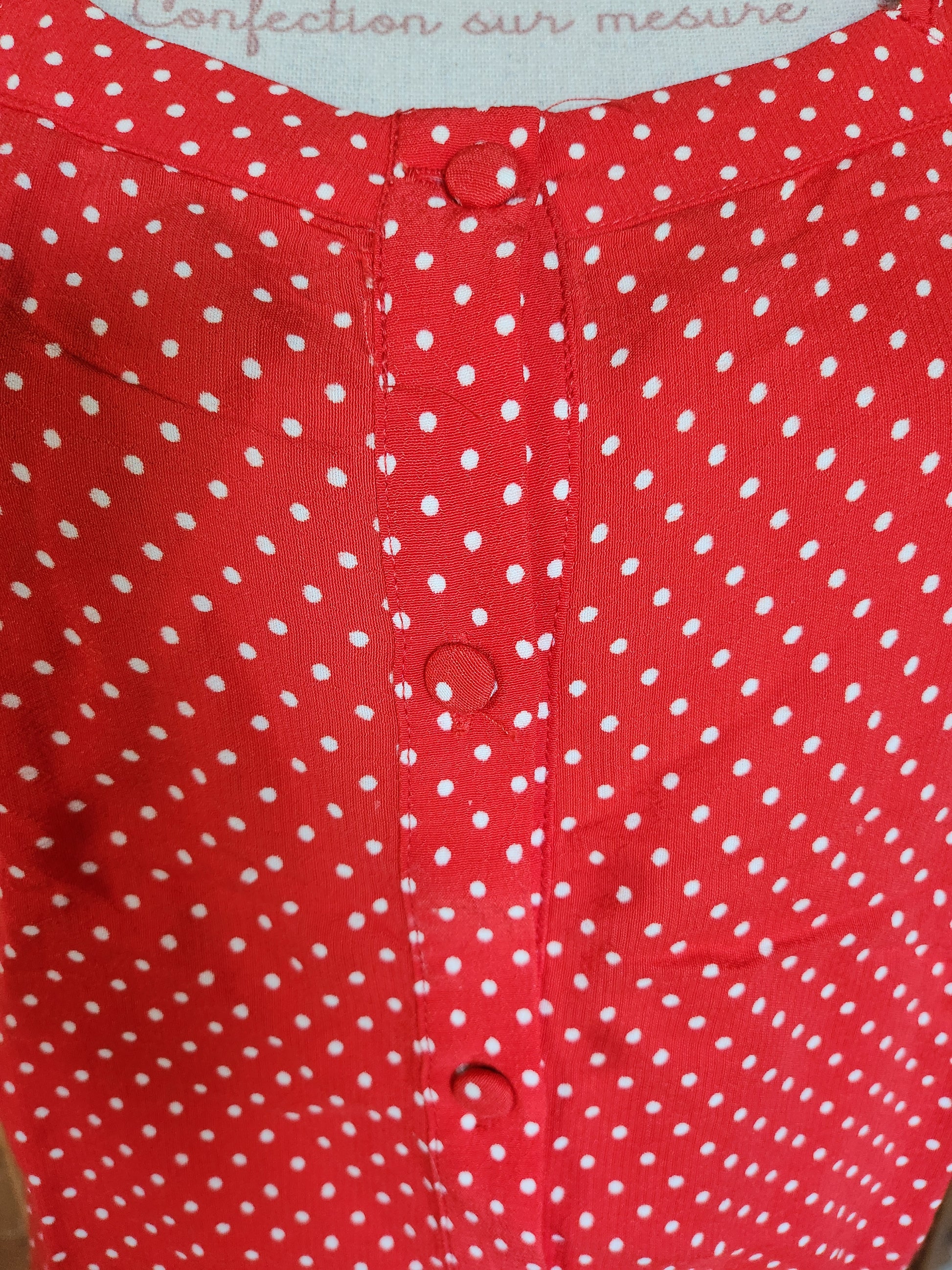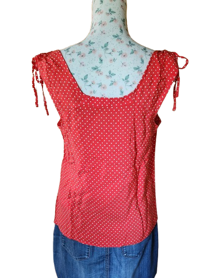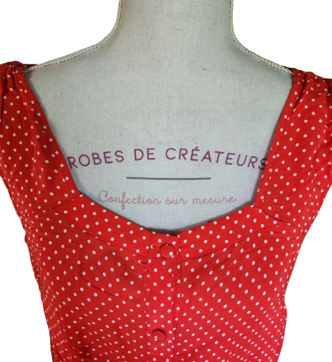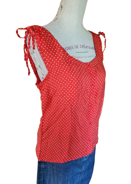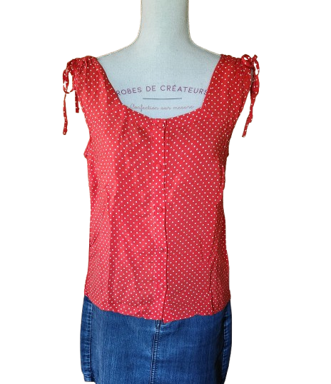 ✔ Chemisier sans manche avec épaules froncées avec petit nœud, col carré et ouverture boutonnée