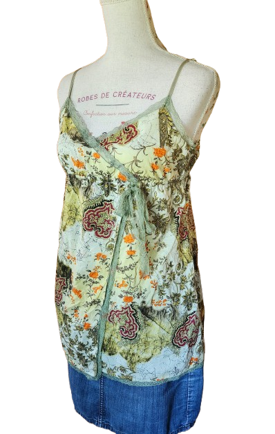 ✔ Débardeur à bretelles réglables avec liseret en dentelle, bustier cache-cœur fermé avec effet portefeuille et liseret en dentelle