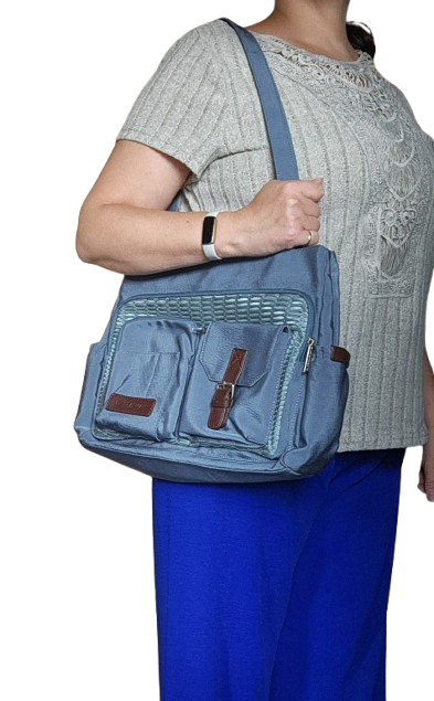 ✔ Grand sac à main en toile avec détail en cuir marron, multipoches, à la fois élégant et fonctionnel, à l'allure sportive mais chic, se porte à la main ou sur l'épaule