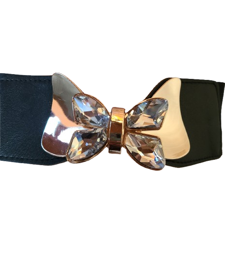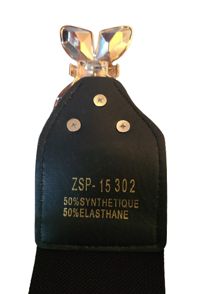 ✔ Large ceinture noire élastique avec une boucle en papillon avec de chaque côté une bande de similicuir noir