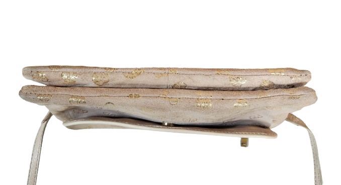 ✔ Petit sac à main en bandoulière réglable, en croûte de cuir beige imprimé doré pour un look élégant et chic