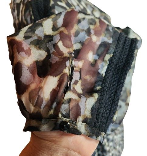 ✔ Manches longues semi-transparentes et liseret brodé noir le long des bras