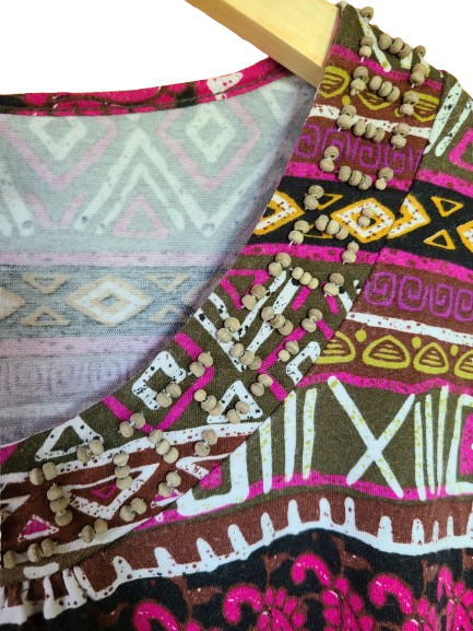 ✔ Tee-shirt avec petites perles en bois autour du décolleté arrondi, manches courtes
