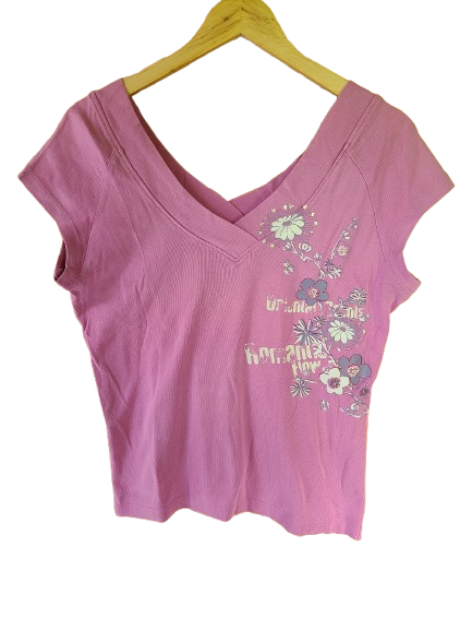 ✔ Tee-shirt avec décolleté V devant et derrière, motifs fleurs avec sequins