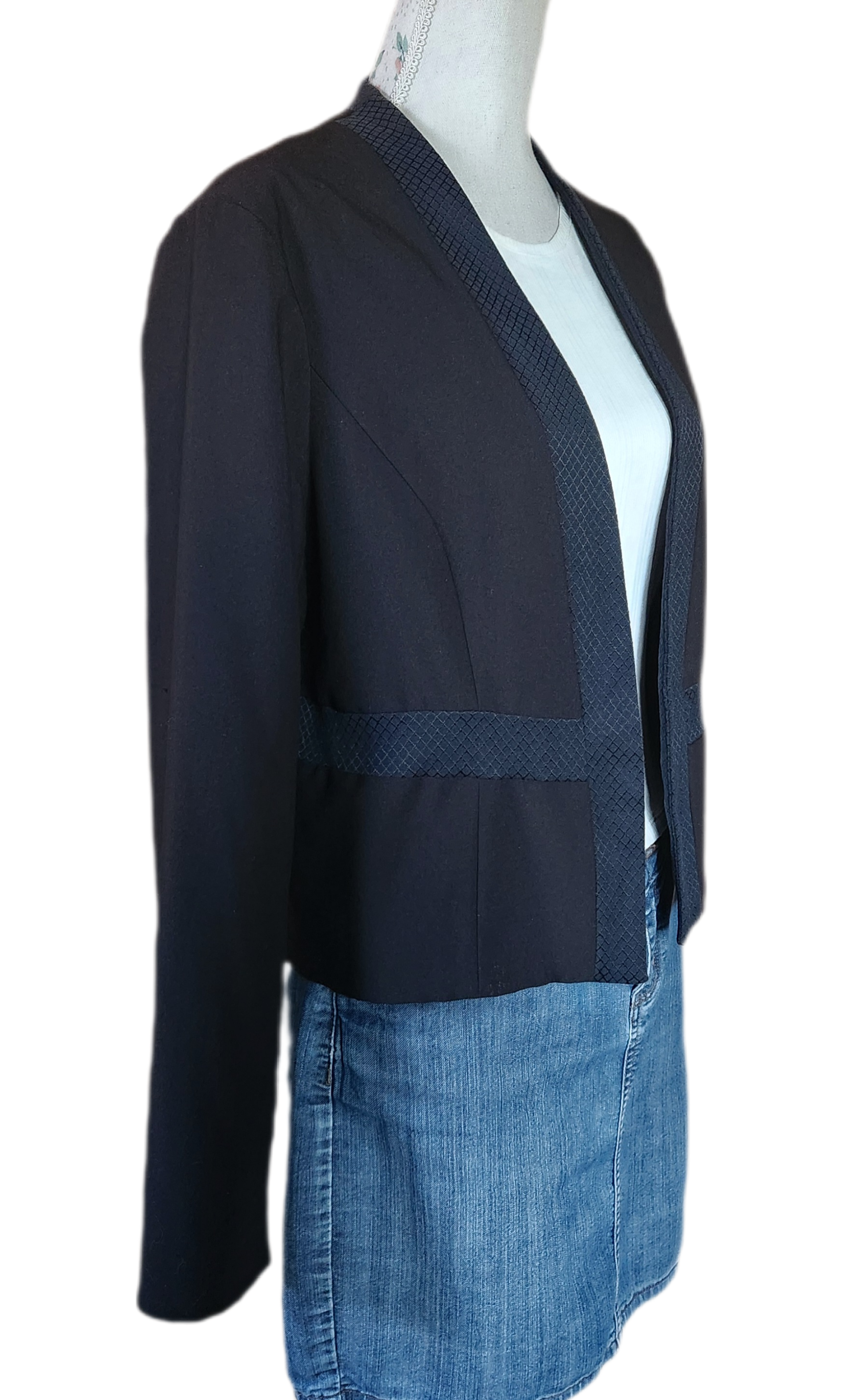 ✔ Cette veste blazer noire Grain de Malice, cintrée pour mettre en valeur la silhouette, se distingue par sa coupe ouverte raffinée. Son design bi-matière orné d'un liseret subtile apporte une touche contemporaine et élégante. Les manches longues garantissent confort et style.