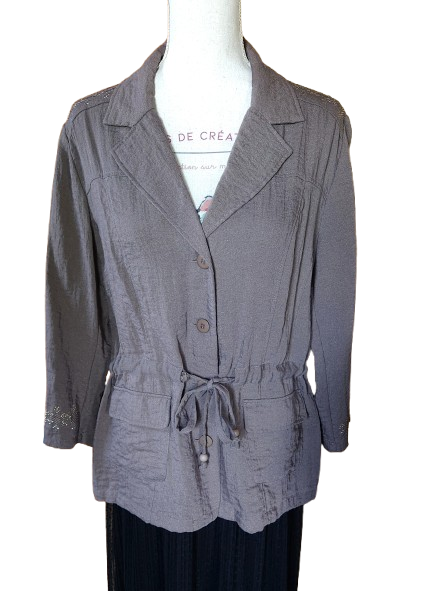 ✔ Veste chemise couleur taupe fermeture boutonnée avec lien à nouer à la taille